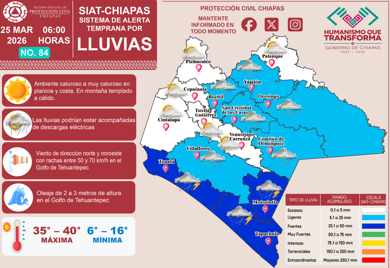 Redacción MAR. 25 (interMEDIOS).– 📢 ¡Atención #Chiapas! 📢 Hoy, 25 de marzo del 2026, el Sistema de Alerta Temprana por…