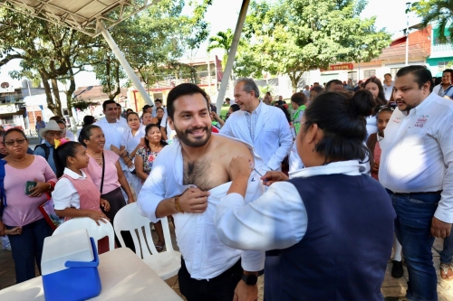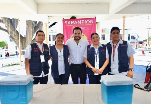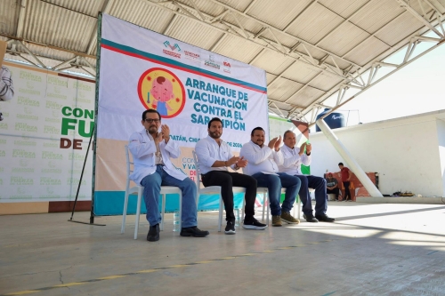 Cacahoatán, Chis; ENE. 13 (interMEDIOS).– Con el firme compromiso de salvaguardar la salud de las familias cacahoatecas, el Presidente Municipal, Víctor Pérez Saldaña, encabezó el inicio oficial de la campaña de vacunación preventiva contra el sarampión.