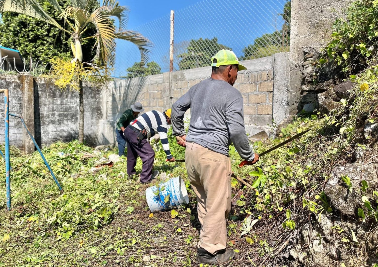 Cacahoatán, Chis; ENE. 21 (interMEDIOS).– Atendiendo la solicitud realizada, el grupo de macheteros apoyó al Jardín de Niños Carlos Perrault con trabajos de limpieza y mantenimiento en sus instalaciones, mejorando las condiciones del plantel.