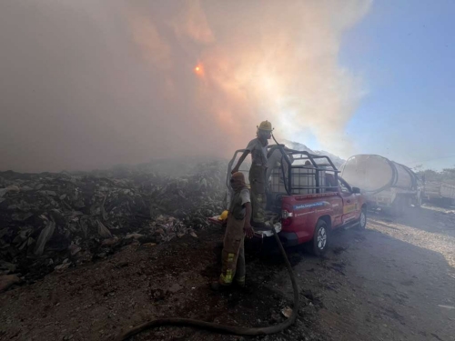 Cacahoatán, Chis; ENE. 16 (interMEDIOS).– Los elementos del H. Cuerpo de Bomberos de Cacahoatán se sumaron a las labores de atención del incendio en el basurero municipal de Tapachula, donde con unidad y compromiso, trabajaron de manera coordinada con Protección Civil para contribuir al control del fuego en el lugar.