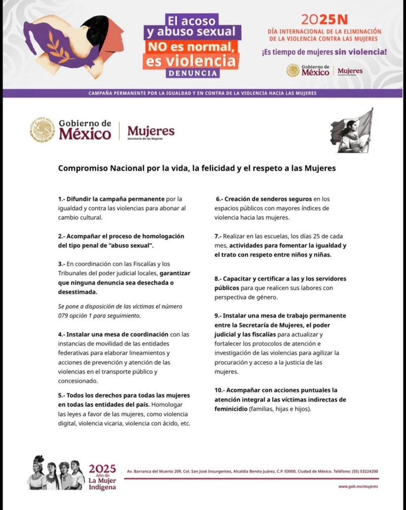El Compromiso Nacional por la Vida, la Felicidad y el Respeto a las Mujeres consiste en 10 puntos que los gobiernos federal y estatales asumen para seguir avanzando en garantizar a las mujeres una vida libre de violencia e inequidad. (iM-rrc).