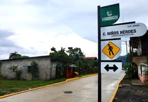 Cacahoatán, Chis; NOV. 11 (interMEDIOS).– Pavimentación de calle con Concreto Hidráulico en el ejido Ahuacatlán.