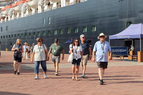Tapachula, Chis; MAR. 06 (interMEDIOS).– El Ayuntamiento que preside Fabian Barrios de León a través de la Dirección de casa de cultura municipal a cargo de Dulce Violeta recibió a turistas con la llegada del crucero MS Zuiderdam al puerto de Puerto Chiapas, visitantes de distintas partes del mundo pudieron disfrutar no solo de los atractivos turísticos de la región, sino también de su riqueza cultural.