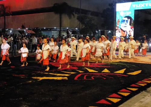 En la avenida central una espectacular alfombra dio muestra de la riqueza y belleza cultural de Tuxtla Chico, un ejemplo del amor de las familias tuxtlachiquenses que cada 2 de febrero adornan más de 2.5 kilómetros de calles creando una gama de colores impresionantes que atrae el interés de miles de turistas, pero que también refleja la unidad e identidad de un municipio orgulloso de sus raíces, de su gente.