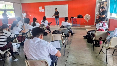 Se abordó el tema de prevención de adicciones, contando con la valiosa participación del Centro de Rehabilitación “Renacer”, quienes compartieron experiencias y herramientas con los jóvenes para fomentar la toma de decisiones responsables, informó la encargada del área de Psicología, Siria Abigail Robledo De La Cruz.