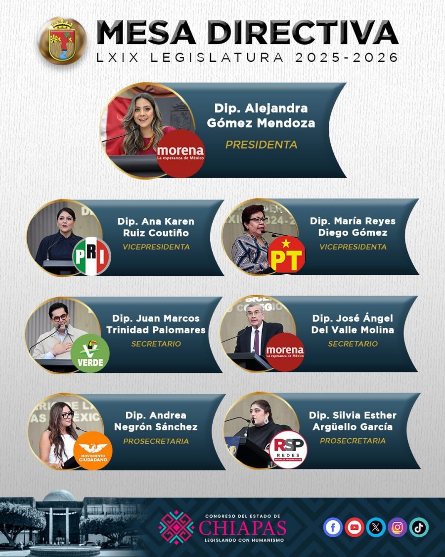 - Vicepresidenta: Ana Karen Ruiz Coutiño del PRI.