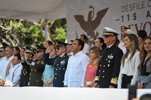 Tuxtla Gtz, Chis; NOV. 20 (interMEDIOS).– Acompañado de cientos de familias chiapanecas que se reunieron a lo largo de la Avenida Central de Tuxtla Gutiérrez, el gobernador Eduardo Ramírez Aguilar presenció el Desfile Cívico Militar con motivo del 115 Aniversario de la Revolución Mexicana, una conmemoración que reafirma la identidad nacional y el respeto por la historia, así como los ideales de justicia y libertad que evocan el legado de las heroínas y los héroes de esta gesta.