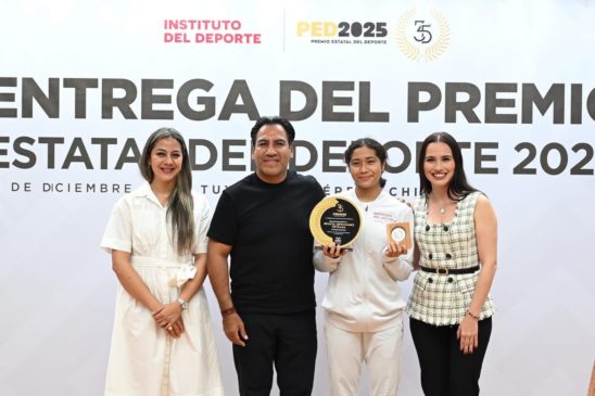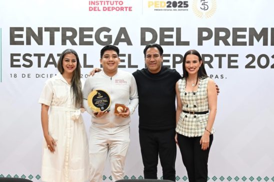 Tuxtla Gtz, Chis, DIC. 19 (interMEDIOS).– Al encabezar la entrega del Premio Estatal del Deporte 2025, el gobernador Eduardo Ramírez Aguilar felicitó a las y los galardonados por su esfuerzo, dedicación y disciplina, y refrendó el compromiso del gobierno de la Nueva ERA de fortalecer al deporte y brindar respaldo permanente a las y los atletas chiapanecos.
