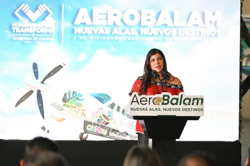 La secretaria de Turismo, María Eugenia Culebro Pérez, reportó que desde el inicio de operaciones de AeroBalam, en abril de este año, se han trasladado más de 2 mil 500 pasajeros en 246 vuelos, lo que confirma los beneficios de fortalecer la conectividad aérea. Afirmó que la incorporación de una segunda aeronave abre nuevas oportunidades de promoción, desarrollo económico y generación de empleos, posicionando a Chiapas como un destino moderno, competitivo y, sobre todo, seguro, innovador y extraordinario por naturaleza.