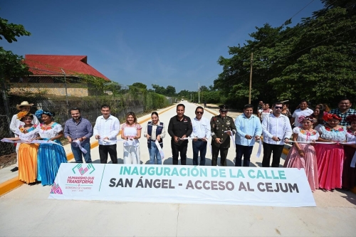 • Entregó la pavimentación con concreto hidráulico de la calle San Ángel, obra que mejorará la movilidad y facilitará el acceso seguro y rápido al CEJUM