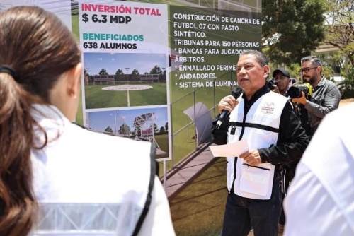 - Puso en marcha la construcción de una cancha de futbol 7 con pasto sintético en la Escuela Preparatoria Villaflores; se invertirán 6.3 mdp
