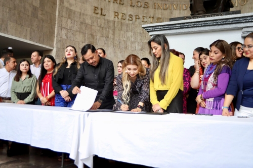 Como testigos e impulsoras de la Iniciativa, las diputadas de la Sexagésima Novena Legislatura plasmaron su firma, en acto protocolario realizado en la sede del Poder Legislativo.