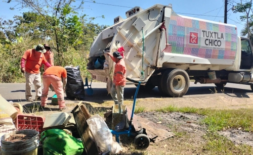 Tuxtla Chico, Chis; MAR. 06 (interMEDIOS).– omo parte de los compromisos del presidente municipal, Julio Enrique Gamboa Altúzar, de reforzar las acciones de salud y bienestar de la población, las tareas de descacharramiento continúan efectuándose en las comunidades de Tuxtla Chico. 29 toneladas de cacharros fueron recolectadas tanto en la Segunda Sección de Medio Monte parte sur y norte, como el cantón el Encanto y Clavelitos.