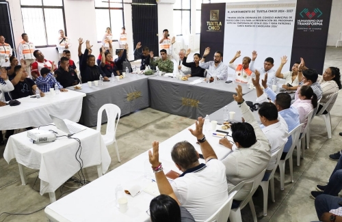 El presidente Municipal de Tuxtla Chico, Julio Enrique Gamboa Altúzar junto a la síndico Yaneth García López, los regidores Martha Tercero Méndez; Felicito Espinoza Recinos; Fátima del Rosario Mota Pérez; Arístides Iván Barrios Montes y Olivia Reyes Armento, presidió la Primera Sesión Ordinaria de Protección Civil, presentación del Programa Especial Temporada de Estiaje y Feria Santa María de Candelaria 2026.