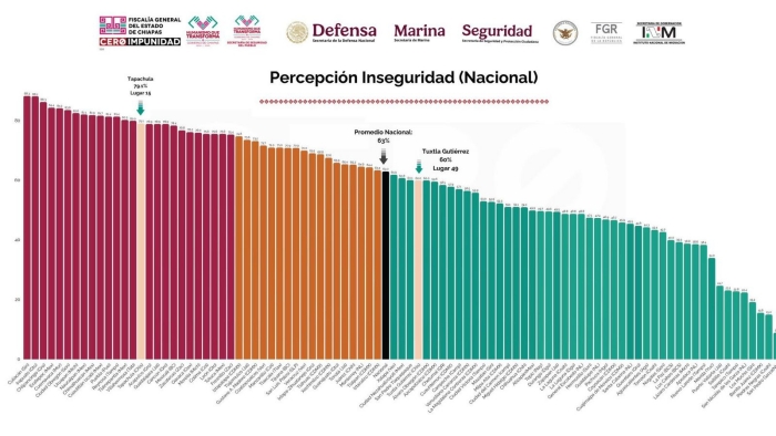Tapachula, Chis, OCT. 24 (interMEDIOS).– Me da mucho gusto amanecer con esta gran noticia: en La Perla del Soconusco, la percepción de inseguridad está disminuyendo. Según la encuesta del INEGI, Tapachula pasó de estar en los primeros lugares de percepción de inseguridad al lugar 15 en la encuesta sobre la inseguridad pública en septiembre de 2025. Esto es resultado del esfuerzo conjunto y la coordinación entre las autoridades y la sociedad. Quiero agradecer a las Fuerzas Armadas y a todas las instituciones de seguridad que día a día trabajan para garantizar la paz y la tranquilidad de las y los ciudadanos. (iM-rrc).