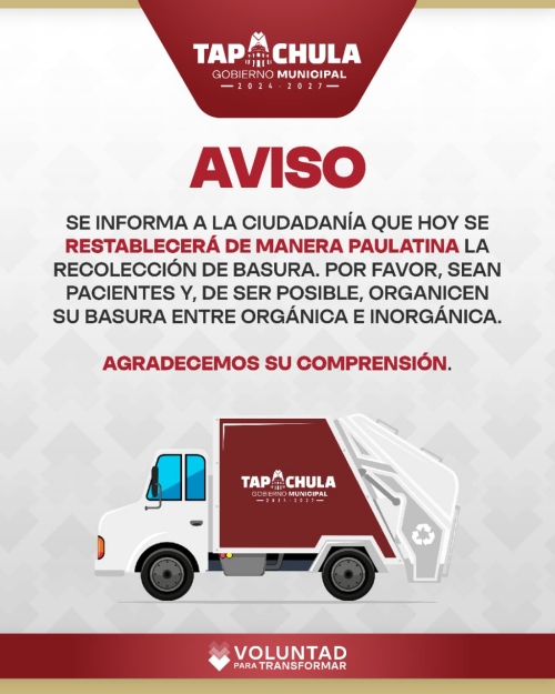 Tapachula, Chis, ENE. 19 (interMEDIOS).– Se le informa a la sociedad: