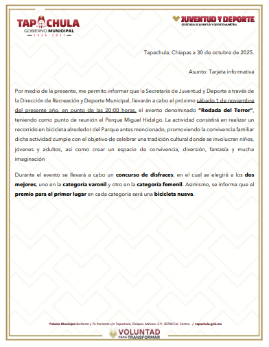Info iM Todo Listo para la Rodada del Terror en Tapachula René Coca Oct 30, 2025 0 Comparte esto:Tweet Haz clic para compartir en WhatsApp (Se abre en una ventana nueva) WhatsApp Haz clic para imprimir (Se abre en una ventana nueva) Imprimir