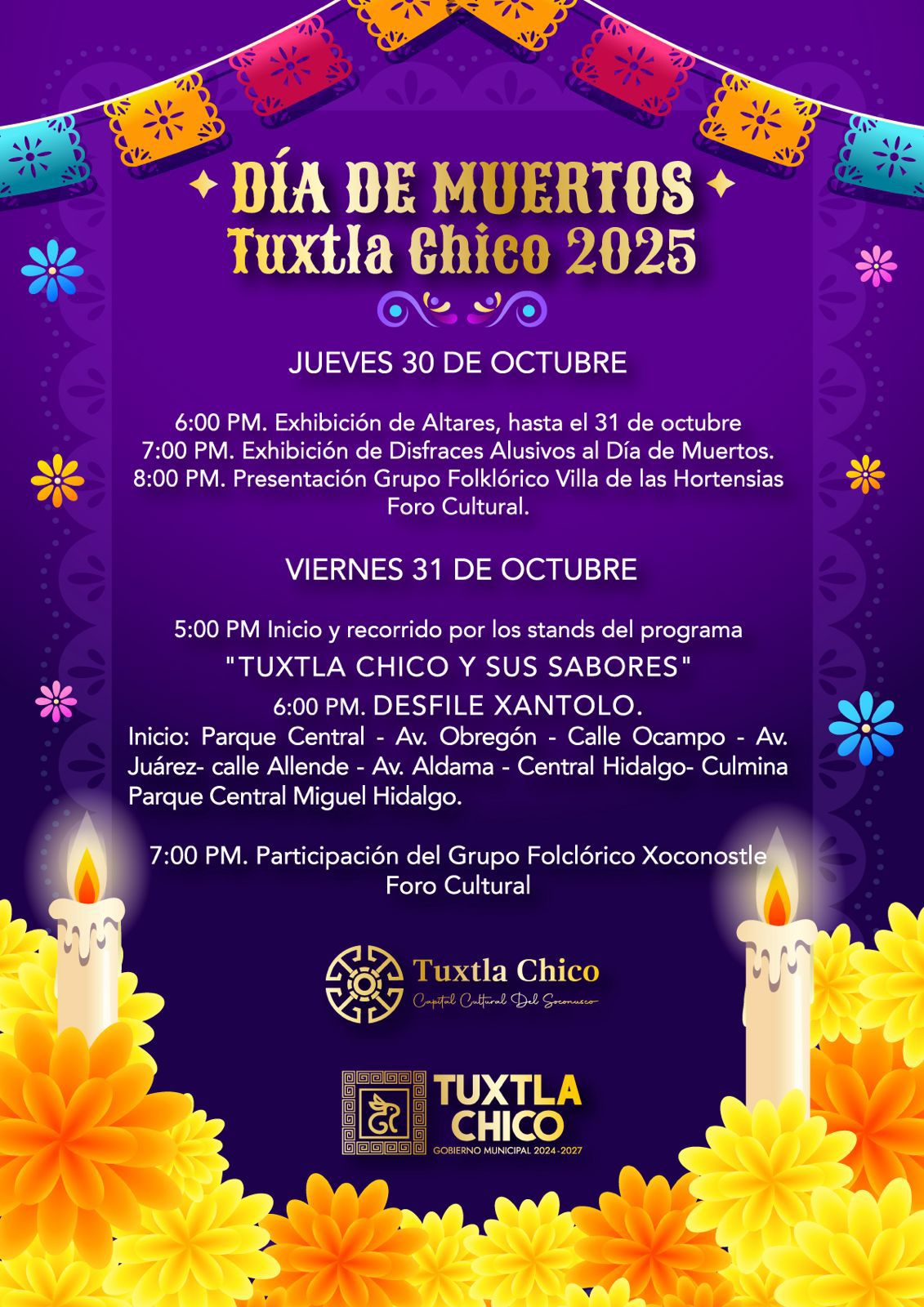 Tuxtla Chico, Chis; OCT. 30 (interMEDIOS).– Juntos disfrutemos de las festividades del Día de Muertos 2025 #TuxtlaChico #Capital Cultural 🏵🕯del Soconusco