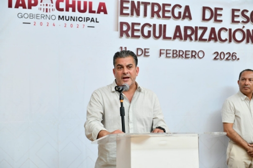 Felicitó a las familias de las colonias La Aviación I, Jardines de Chiapas, Guadalupe Tiplillo, San Diego, Los Ángeles, Nueva Jerusalén, Carmelitas I, La Cima, Bella Vista, Los Pinos y Revolucionaria Campesina, quienes desde este momento ya tienen una escritura en sus manos lo que significa seguridad para sus familias, certeza para sus hijos y la posibilidad de acceder a programas, créditos y apoyos que antes no eran posibles.