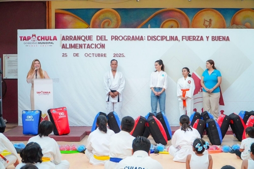 Tapachula, Chis; OCT. 25 (interMEDIOS).– En seguimiento a la estrategia integral que fomenta la práctica deportiva, la buena nutrición y los valores que se desarrollan a través del deporte, el Ayuntamiento de Tapachula a través de la Secretaría de Juventud y Deporte Municipal, en coordinación con UNICEF, puso en marcha el Programa “Disciplina, Fuerza y Buena Alimentación”.
