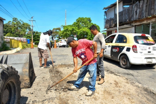 Tapachula, Chis; OCT. 10 (interMEDIOS).– En continuidad al programa “Tapachula Rueda Seguro”, implementado por el alcalde Yamil Melgar Bravo, el Ayuntamiento de Tapachula a través de la Secretaría de Obras Públicas, realizó trabajos de bacheo con mezcla asfáltica en el puente del Fraccionamiento San José El Edén, mejorando la conectividad en una vía que comunica a diversas colonias del sur-oriente de la ciudad. (iM-rrc).