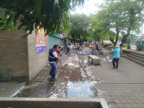 Asimismo, se realizaron labores de lavado en los pasillos del segundo nivel del mercado Laureles, además de la limpieza general en el mercado Guadalupe, con la finalidad de ofrecer entornos más higiénicos, ordenados y seguros para comerciantes y visitantes.