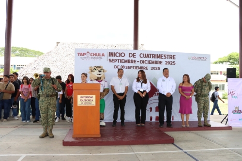 Tapachula, Chis; SEP. 08 (interMEDIOS).– Con emoción y esperanza, la Universidad Politécnica de Tapachula (UPTap) dio la bienvenida al cuatrimestre septiembre–diciembre 2025 en una ceremonia encabezada por el rector, Dr. Javier Yau Dorry, acompañado de autoridades institucionales y distinguidos invitados.