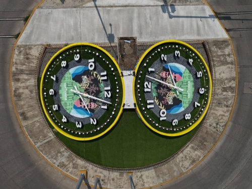 • El reloj floral de la emblemática rotonda vuelve a marcar el tiempo en Tapachula
