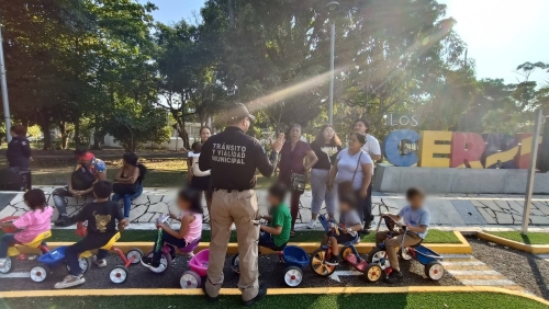 Por otra parte el director de Tránsito y Vialidad Municipal, Luis Eduardo Terán Saucedo, precisó que las acciones se desarrollaron en el circuito vial del Deportivo Los Cerritos, donde niñas y niños, acompañados de sus padres, participaron en un recorrido guiado utilizando triciclos, durante el cual se les explicó el significado de los señalamientos viales y la forma correcta de utilizarlos.